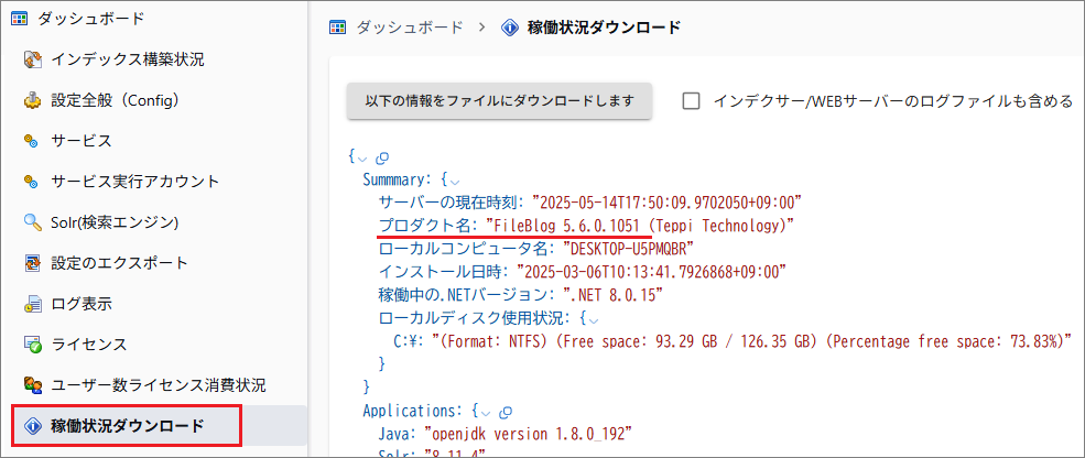 [Summary > プロダクト名]にバージョン番号が表示されます。