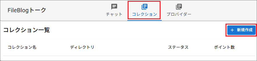画面右上の[新規作成]を選択してコレクションの定義を登録します。