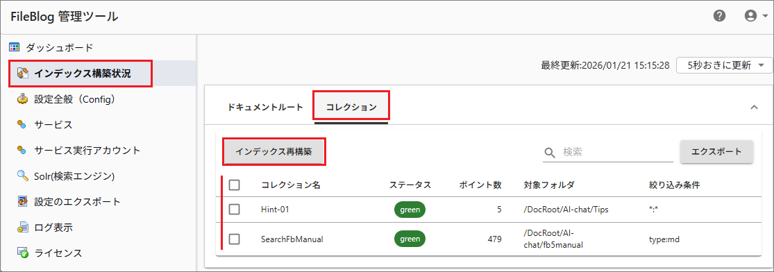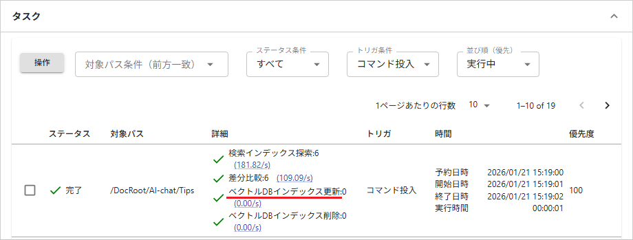 コレクションの指定条件の対象ファイルについては、ベクトル検索用のインデックスデータが作成されます。