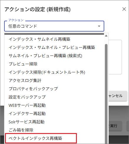 タスクを新規作成(追加)して[アクション > 追加 > 任意コマンド > ベクトルインデックス再構築]を指定します。