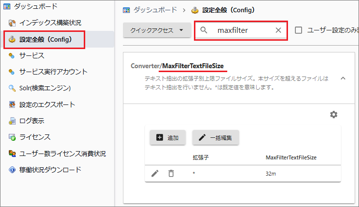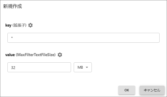 上限値を超えるサイズのファイルは検索インデックスに登録されません。(テキスト情報の抽出を実行しません)