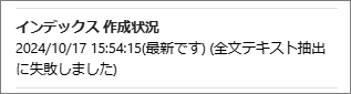 処理が完了できないと該当ファイルのテキスト抽出やプレビュー作成はできず、次回より処理がスキップ されるようになります。