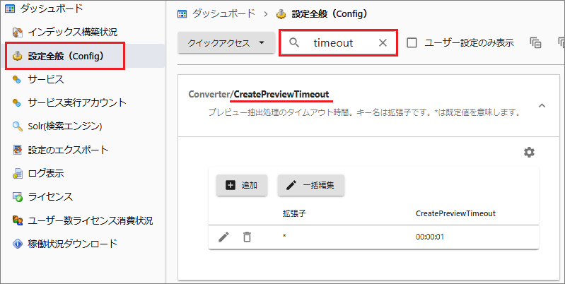 ログ(idxsvr.log)またはプレビュー保存フォルダに次のように出力されているとタイムアウトしています。プレビュー保存フォルダの該当ファイルに紐づくフォルダに