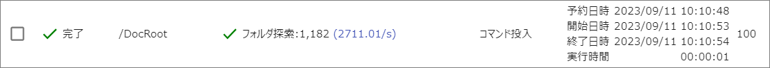 実行すると[管理ツール > インデックス構築状況 > タスク]に「フォルダ探索」の処理が投入されます。