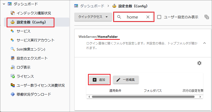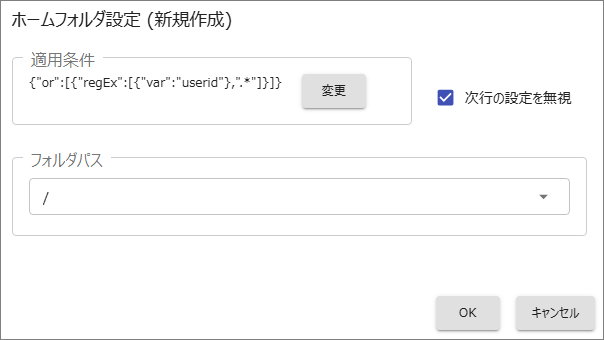 [変更]を選択して適用条件を編集し、ホームフォルダに接続される定義を作成します。