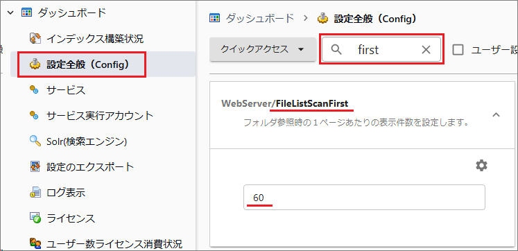 フォルダを開いたとき、または検索結果において一度に表示(取得)するファイル/フォルダの数です。