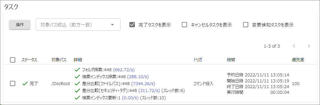 ファイルサーバーからの通知を受けて自動的に実行したタスクを表示します。