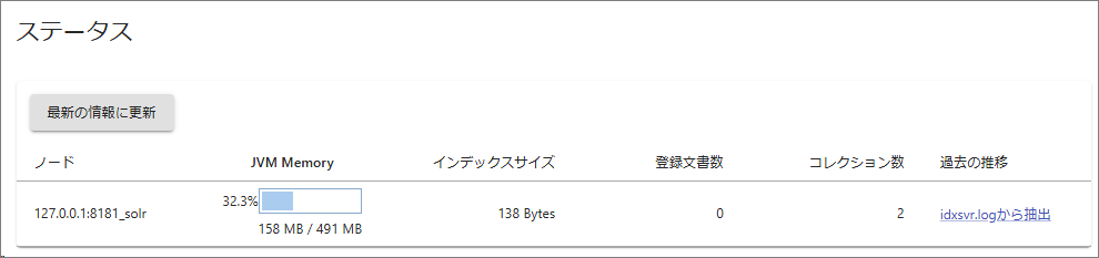 検索エンジンの簡易状況を確認することができます。定期的にメモリ使用容量を確認してください。