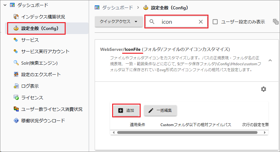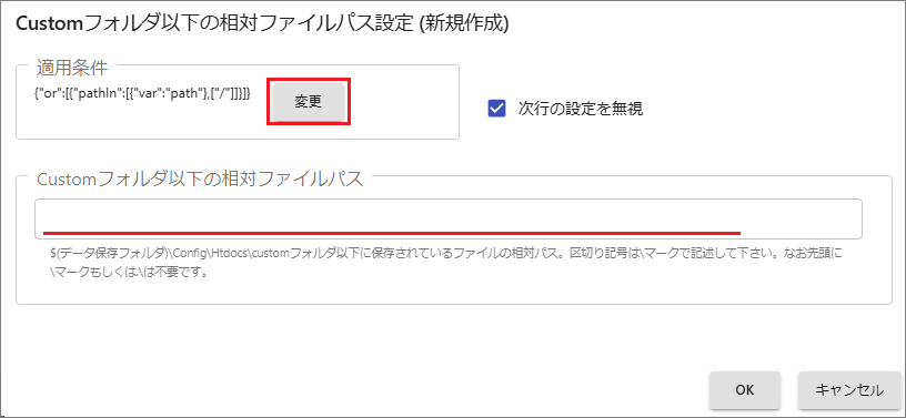 [変更]を選択して適用条件を編集し、アイコン表示の定義を作成します。