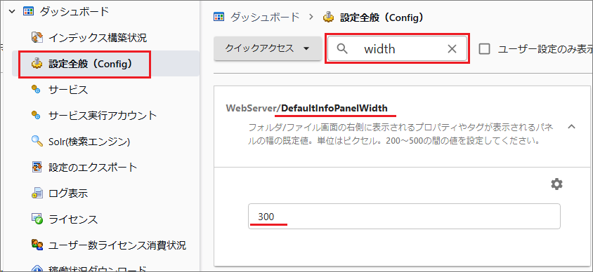 [WebServer/DefaultInfoPanelWidth]を選択して値(単位px)を指定します。