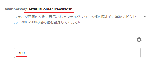 [WebServer/DefaultFolderTreeWidth]を選択して値(単位px)を指定します。