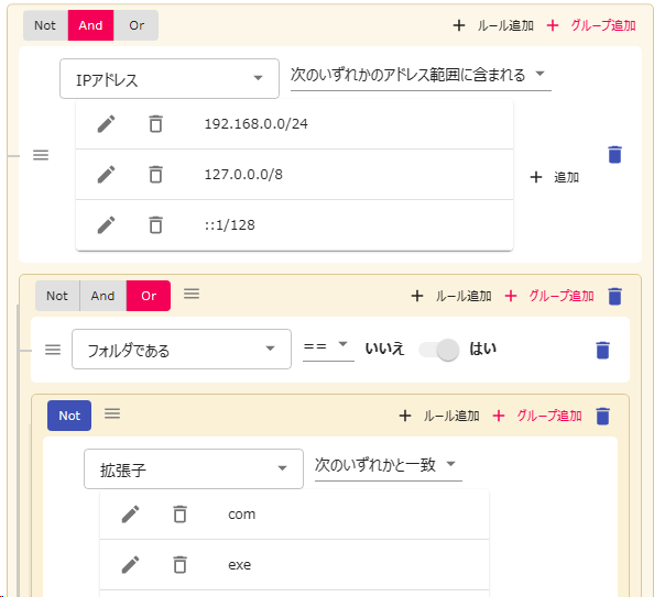 192.168.0.0/24127.0.0.0/8::1/128フォルダとファイルに実行を許可
