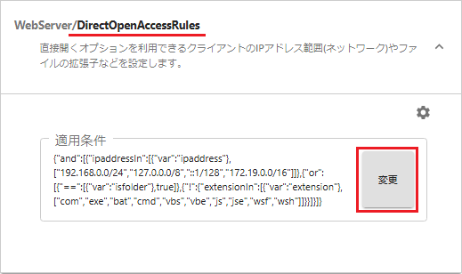 [変更]を選択して適用条件を編集し、[直接開く]の操作を許可する定義を作成します。