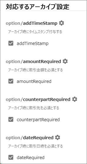 アーカイブ実行時に[保存区分]タグが未入力の場合は本設定の値が自動的に登録されるようになります。