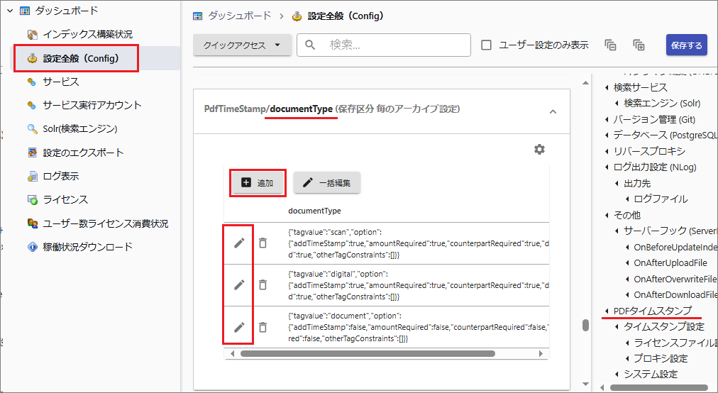 [tagvalue]に「保存区分」タグ(pdfts_document_type)の値の1つを登録します。