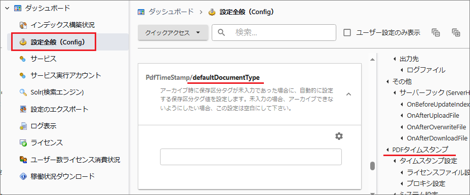 本機能は標準既定タグ「保存区分(フィールド名:pdfts_document_type)」の値(value)に対して条件を設定できます。