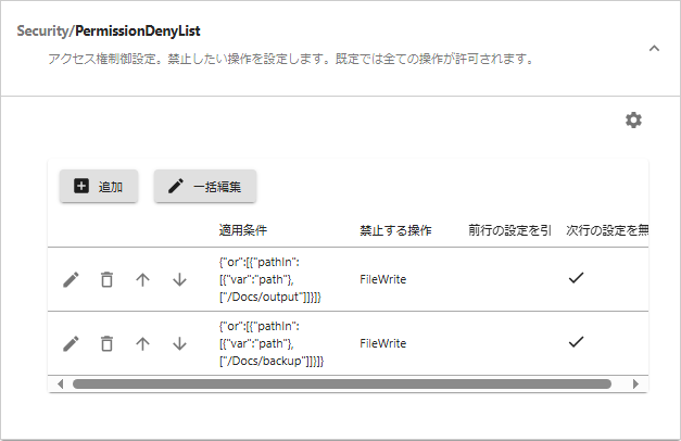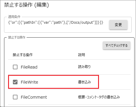 この設定の目的は、書き込み権限をもつAdministoratorsグループ所属のユーザーであっても、FileBlogからの操作ではファイルに変更を与えられないようにすることです。