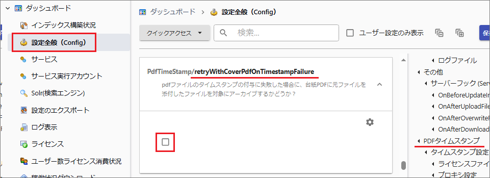 タイムスタンプ付与に失敗した場合には、自動的にPDF台紙に添付してタイムスタンプ付与するようにできます。