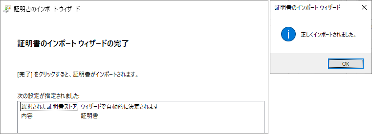 証明書のインポートウィザードが開始されるので上記手順を参考にインストールを進めます。