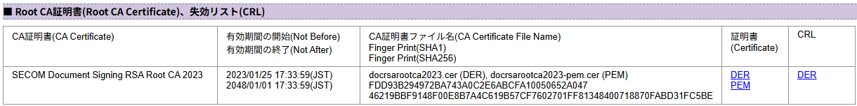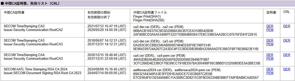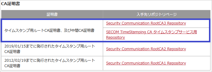 ルート証明書はアマノセキュアジャパン社のサイトからセコムトラストシステムズ社のダウンロードサイトに接続できます。