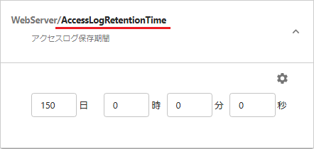 [WebServer/AccessLogRetentionTime]を選択して、[NumberOfDays(集計対象日数)]よりも長い日数を指定します。