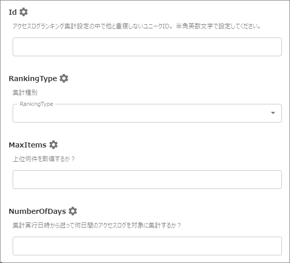 RankingTypeが[検索ワード]のときに機能します。集計対象外の検索ワードを指定します。1つ以上指定されているといずれかの正規表現式に適合するアクセスログを集計対象外とします。