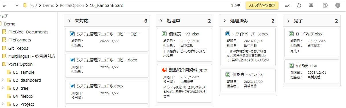 指定されたフォルダにあるファイルがカンバンとして表示されます。