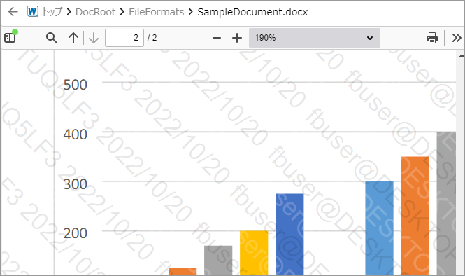 プレビューで表示されるPDFファイルに透かしを挿入して表示させることができます。また印刷実行時に透かしをいれて出力させることができます。