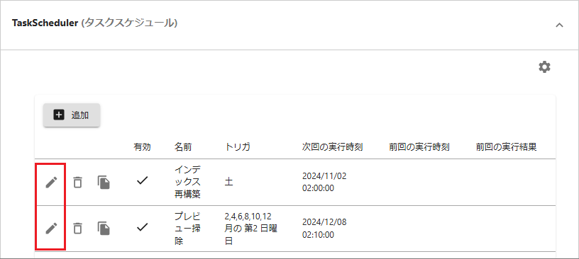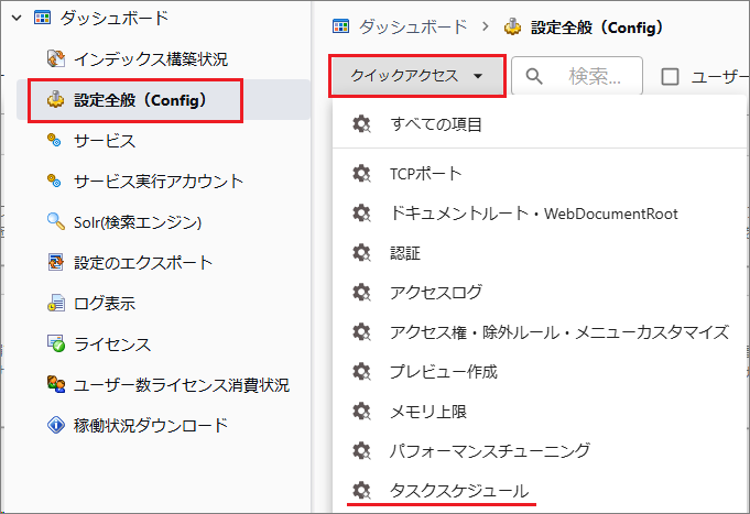 [管理ツール > 設定全般 > クイックアクセス > タスクスケジュール > TaskScheduler]を選択すると確認できます。