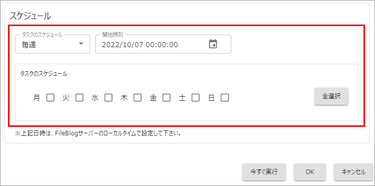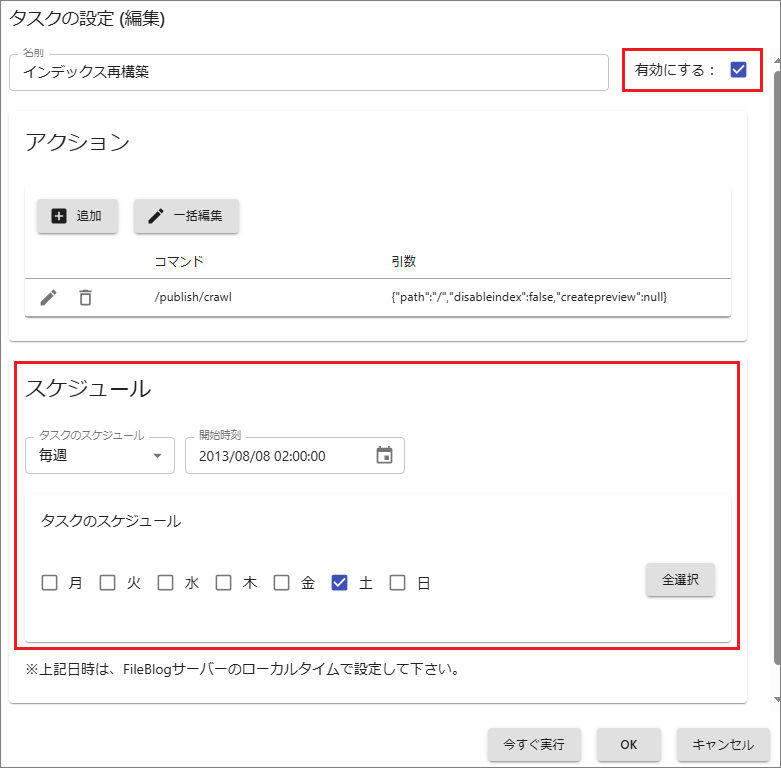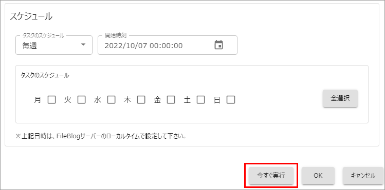 タスク編集画面の[今すぐ実行]を選択するとタスクが即実行されます。