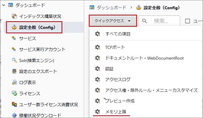 検索エンジンの割り当てメモリを変更する
