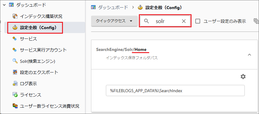 インデックスデータの保存場所を変更する