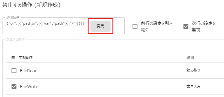 禁止する操作は[FileWrite 書き込み]にチェックを入れます。