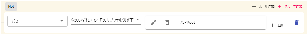 適用条件ではSharePoint接続のドキュメントルートフォルダを指定します。(例図では