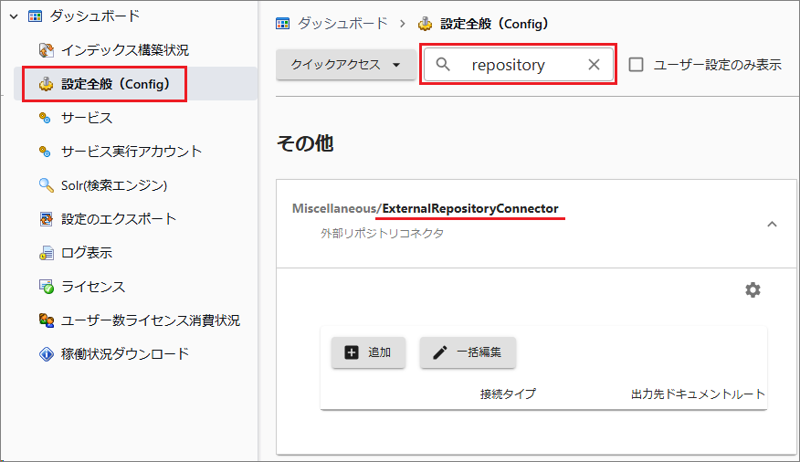 [管理ツール > 設定全般 > repository]を検索します。