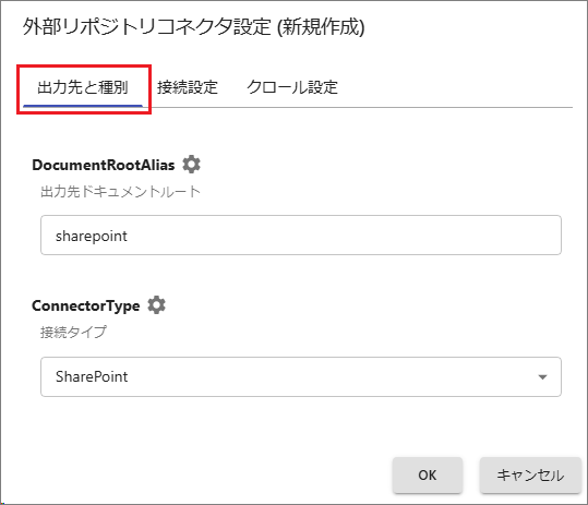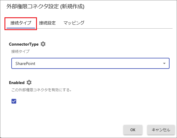 ConnectorType: [SharePoint]を指定します。