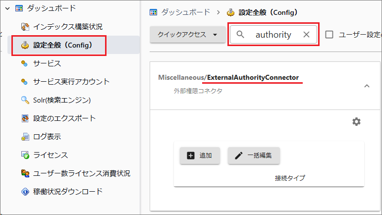 [管理ツール > 設定全般 > authority]で検索します。