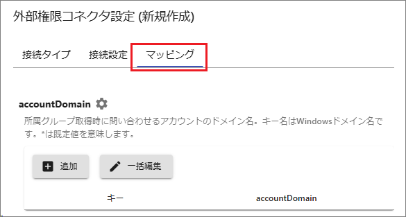 [マッピング]タブでは、FileBlogにログイン認証するユーザーアカウントと、SharePoint Onlineで認証されるユーザーアカウントを関連付けます。