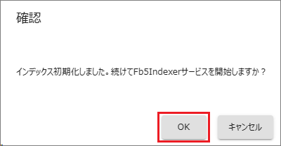 「続けてFb5Indexerを開始しますか」のダイアログが表示されるので[OK]で続行します。
