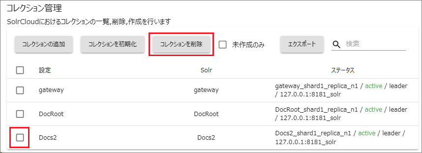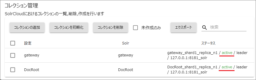 [gateway]コレクションは検索クエリを発行するときの中継に利用するコレクションなので削除しないでください。