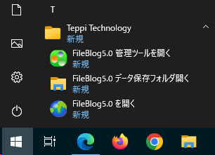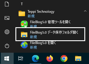 Windowsスタート > Teppi Technology > FileBlog5.0データ保存フォルダを開く