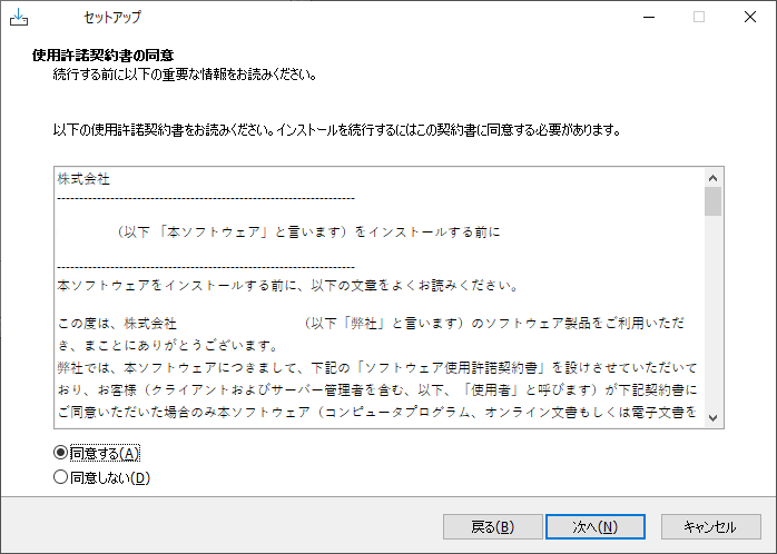 使用許諾契約の内容をご承諾のうえ[次へ]を選択してください。