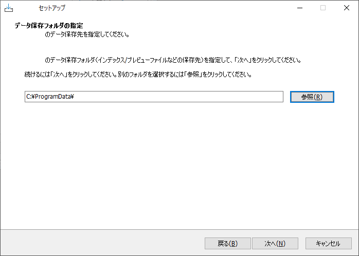 標準既定: C:\ProgramData\Teppi Technology\FileBlog\5.0\SearchIndex