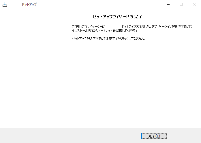 「セットアップウィザードの完了」の画面が表示されればインストール完了です。[完了]を選択して閉じます。