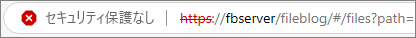 用意したサーバー証明書やインストールに問題なくても、FileBlogに接続してもSSL/TLS通信(HTTPS接続)が下図のように「セキュリティ保護なし」の状態になることがあります。