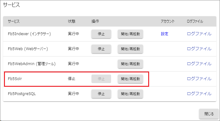検索サービス(Fb5Solr)が停止している可能性があります。