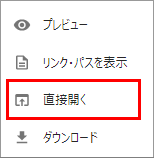 プレビュー画面の[直接開く]、まはたファイル操作の[直接開く]を選択します。