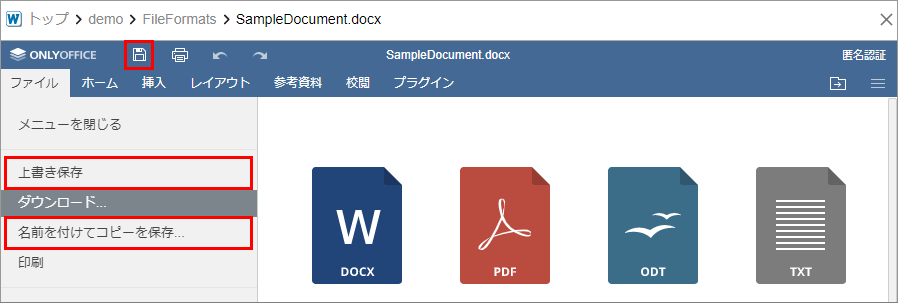 (標準では自動保存機能は有効になっていません。)ONLYOFFICEはMicrosoft Officeと互換性がありますが、正確な互換性を保証しているわけではありません。