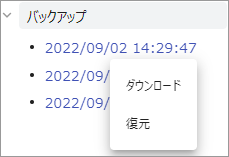 自身が保存した直前のファイルのバックアップを一覧することができ、一覧から選択した過去のファイルを復元またはダウンロードできるようになっておりますが、他者が保存した直前のバックアップは一覧に表示されません。