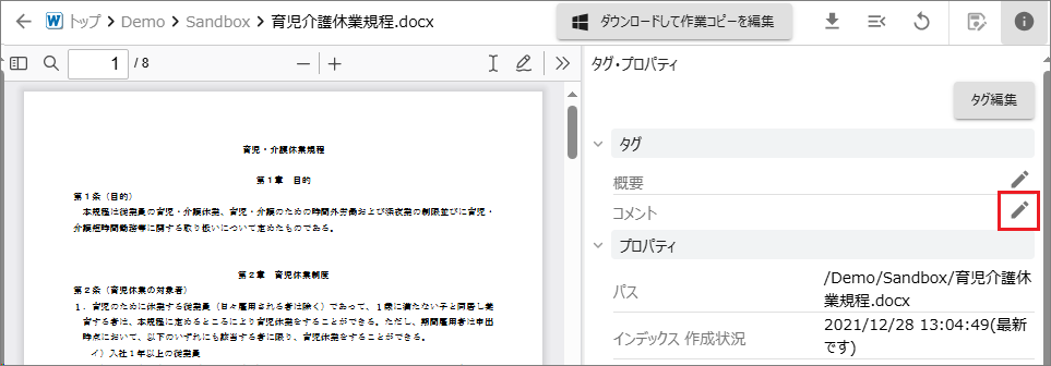 アクセス権限のあるユーザーが[ゴミ箱マーク]を選択するとコメントを削除できます。